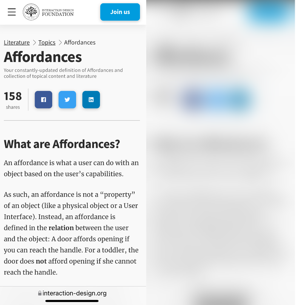 What should exist are products that anyone can use. Think of a door or a window, for example. We know how to use these kinds of technologies because they’ve been around a long time. Should digital design affordance aim for the same kind of instinctive user interaction? And is a door broken, or more user-friendly, if it needs a “pull” or “push” label on it?